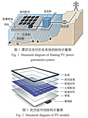 能源是经济发展的先决条件,在过去几十年,全球可再生能源技术发展迅速,太阳能以清洁、安全、取之不尽等显著优势,成为发展最快的可再生能源之一。尤其是中国的光伏产业,目前已占据全球 70% 以上的市场份额。光伏发电系统一般安装在地面或屋顶。地面光伏发电系统的建设需要占用大量土地,而日本、韩国、印度尼西亚等国家的土地资源有限,因此,漂浮式光伏发电系统就有了开发需求。漂浮式光伏发电系统是指可以安装在海洋、湖泊、水库、渔场等水体上的光伏发电系统。目前,漂浮式光伏发电系统在美国、英国、日本等国家都已有应用案例,而中国在该领域的启动较晚,在 2015年才开始有小规模示范项目启动,主要分布在安徽、天津、山东等地区。根据全球行业分析公司(Global Industry Analysts) 发布的研究报告,预计2026 年漂浮式光伏电站的累计装机容量将达到4.8 GW,年复合增长率大于 30%。中国现有的漂浮式光伏发电系统示范项目一般建设在面积较小的内陆水域,采用“渔光互补”的模式,工况环境相对简单。因此,此类漂浮式光伏发电系统的设计方案及配套设施对于复杂工况,尤其是海洋环境的适应性较差,这也限制了其在海洋环境下的大规模应用。本文基于建设在内陆水域的漂浮式光伏发电系统设计及材料选用,对漂浮式光伏发电系统材料在海洋环境下应用时的腐蚀效应进行分析,为开发利用海上光伏资源提供借鉴。