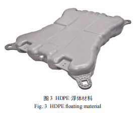 与建设在陆地的光伏发电系统不同,漂浮式光伏发电系统的各部件需由浮体材料支撑。目前,在国内外的漂浮式光伏发电系统示范应用案例中,淡水环境下一般采用高密度聚乙烯(HDPE) 作为浮体材料,通过中空吹塑制成,具体如图 3 所示。此种材料大量用于燃气管道,具有耐磨性好、吸水率低、环保可回收等优点。浮体材料是漂浮式光伏发电系统的关键支撑部件,但目前其在结构设计、材料抗风浪及耐老化性能、浮体可靠性及寿命评价等方面均存在较多的技术问题尚未解决,其可靠性、寿命、经济性是制约漂浮式光伏发电系统大规模应用的主要原因。