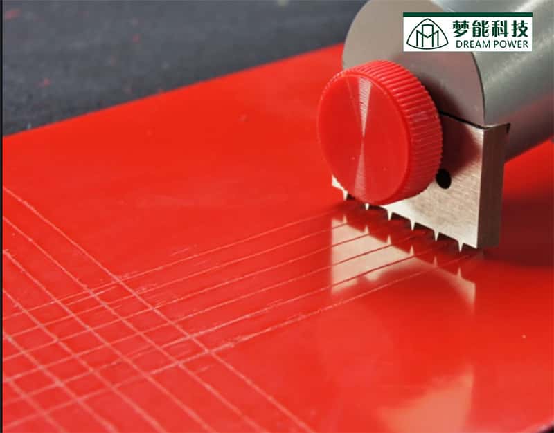 涂料的附着力是指涂膜与基材之间的结合强度,划格法是最常用的附着力检测方法,这是简单且相对便宜的测试方法,能提供有关涂层在标准条件下的粘附性能的定性信息。划格法测试通常包括在涂层表面上使用切割工具进行一系列平行切割,然后以直角重复以创建网格或格子图案,切割的数量取决于所遵循的标准或规范,运用在两个外导线之间的一排6/11个刀片,划出25/100个方格,再使用标准评级表目视评估或评估涂层的附着力。